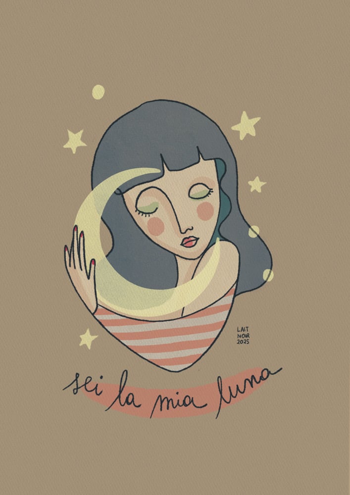 La serie illustrata La Luna Storta dell'omonima agenda Moon 2026 è disponibile anche in versione stampa da incorniciare* in formato A5!